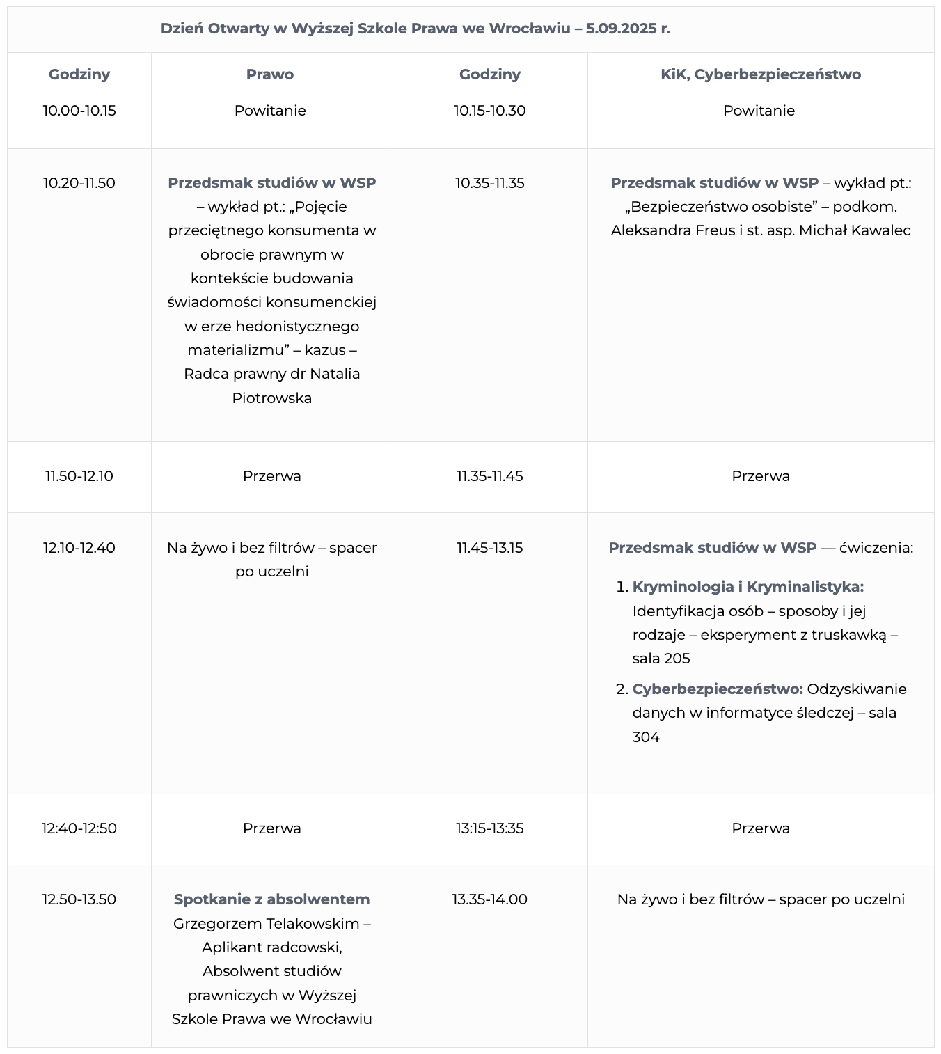 Dzień Otwarty w Wyższej Szkole Prawa – 5 września 2025 r.