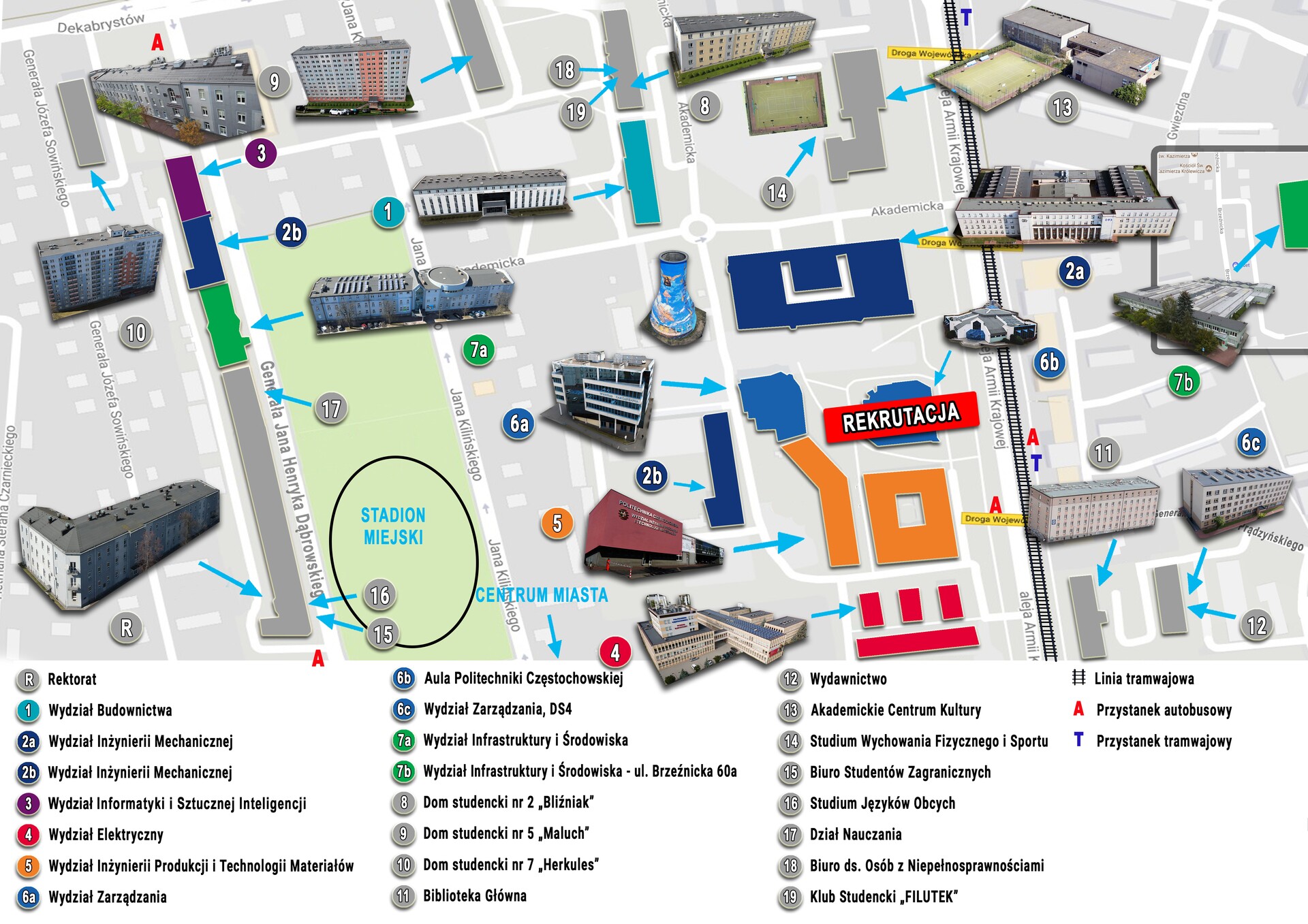 Przyjmowanie dokumentów na wszystkie kierunki studiów od kandydatów zakwalifikowanych do przyjecia na studia odbywać się będzie w Auli Politechniki Częstochowskiej, Al. Armii Krajowej 19