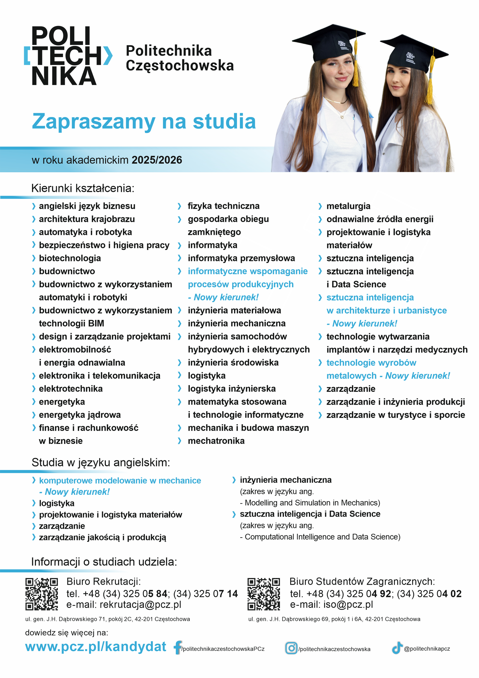 Zapraszamy na studia w Politechnice Częstochowskiej