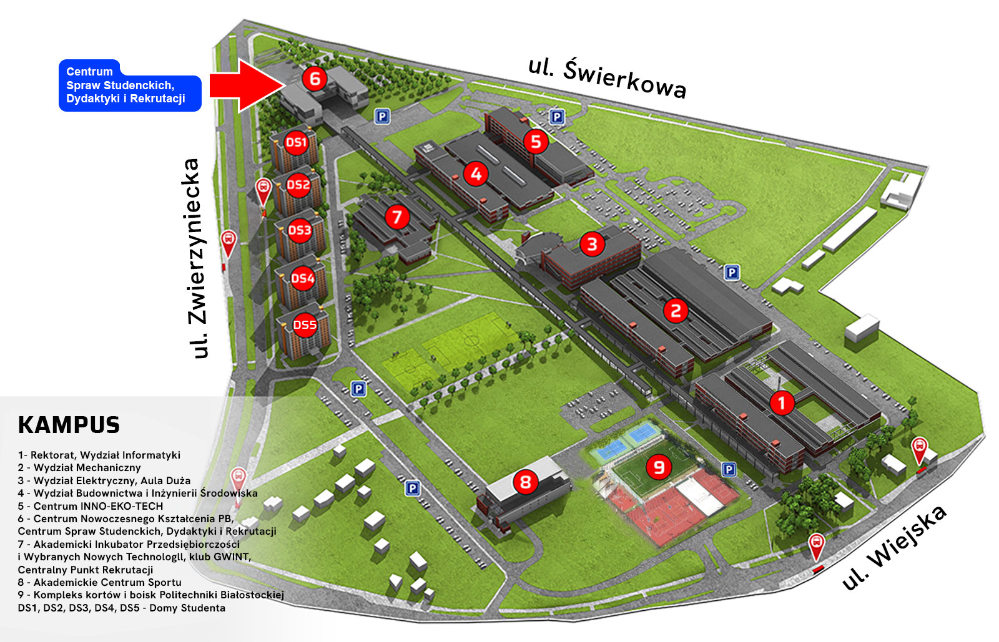 Politechnika Białostocka to największa uczelnia techniczna w północno-wschodniej Polsce. Studia prowadzone są m.in. na następujących wydziałach: