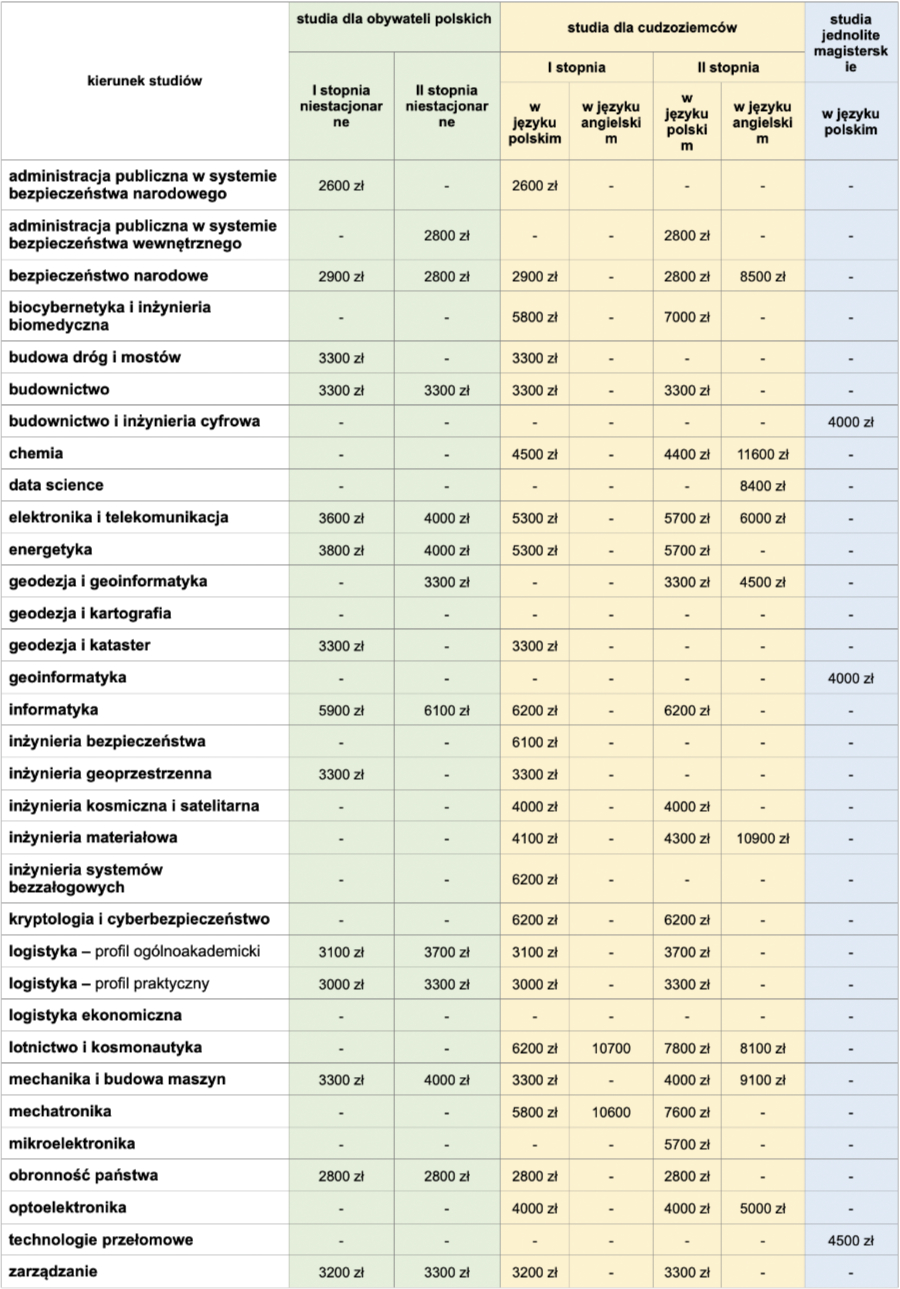 - WYSOKOŚCI OPŁAT ZA STUDIA NIESTACJONARNE WAT